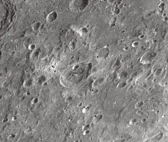Por convención estos elementos son identificados en los mapas lunares poniendo la letra en el lado del punto medio del cráter que está más cercano a Neander.