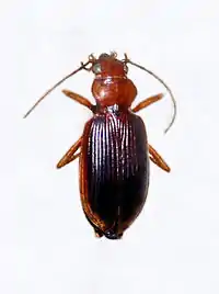 Pueden alcanzar una longitud de 12 a 13 milímetros (0,47 a 0,51 pulgadas). El cuerpo es negro, mientras que la cabeza, el tórax y el borde exterior de los élitros son leonados.[2]