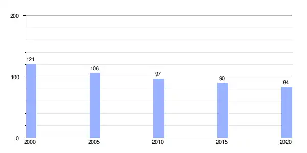 | Gráfica de evolución demográfica de Negradas entre 2000 y 2020 |