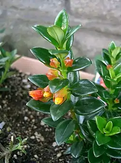 Las flores tienen sus pétalos fusionados en forma de “bolsa”, son de un color naranja intenso y de tacto ceroso, con la garganta amarilla y un pequeño orificio, lo que les da la apariencia de pequeños peces, de allí uno de sus nombres comunes “pececillo”. La floración generalmente comienza al final de la primavera o comienzos del verano, aunque puede hacerlo en otros periodos del año, sobre todo cuando se la cultiva en climas templados o en interiores.