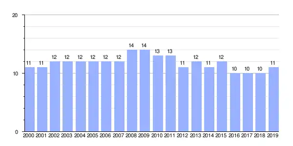 | Gráfica de evolución demográfica de Nemeño (parroquia) entre 2000 y 2019 |