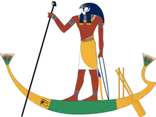 Se le cita en los Textos de las Pirámides, como encargado de vigilar la navegación de la barca solar en compañía de Sokar; también era el barquero que conducía a la diosa Isis hacia la llamada “Isla de en medio”. Habita en una extraña vasija repleta de flechas.