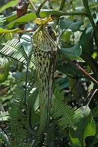![]() An upper pitcher of Nepenthes faizaliana del Monte Api | ||