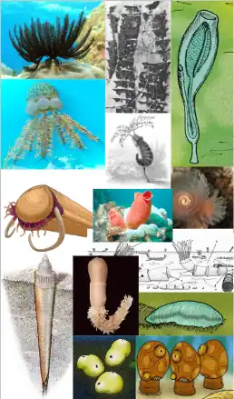 - Nielsen, Claus (2008). «Six major steps in animal evolution: are we derived sponge larvae?». Evol. Dev. 10 (2): 241-257. PMID 18315817. S2CID 8531859. doi:10.1111/j.1525-142X.2008.00231.x.