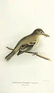 ![]() Mosquerito de la isla del Coco (Nesotriccus ridgwayi). | ||