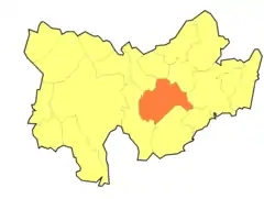 Se encuentra ubicada al este de la región, cerca de la orilla del río Morava —un afluente izquierdo del Danubio—, de la frontera con las regiones de Zlín y Moravia-Silesia, y a poca distancia al este de la ciudad de Brno.[1]