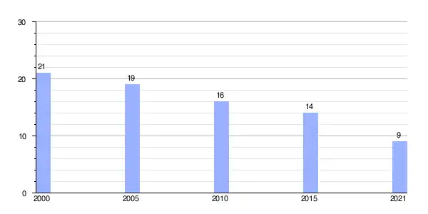 | Gráfica de evolución demográfica de Nespereira (aldea) entre 2000 y 2021 |