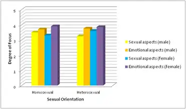 Un estudio que probó palabras validadas positiva y negativamente en sujetos tanto masculinos como femeninos encontró que el procesamiento emocional era ciertamente específico de género. En los hombres, las palabras validadas positivamente activaron el córtex sensimotor izquierdo, el giro angular, el hipocampo izquierdo, el campo del ojo frontal izquierdo y el cerebelo derecho, mientras que las mujeres tuvieron activaciones en el putamen derecho, el giro temporal superior derecho, el giro supramarginal izquierdo, el giro frontal inferior izquierdo y la corteza sensomotora izquierda. Por el contrario, las palabras validadas negativamente estimularon una mayor activación en el giro supramarginal derecho en los hombres, mientras que una mayor activación en la parte izquierda del hipocampo con estímulos negativos.[14] Por lo tanto, diferentes regiones cerebrales en hombres y mujeres podrían aludir a respuestas diferenciales del procesamiento emocional de situaciones íntimas.