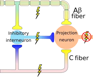Representación de los disparos neuronales en la teoría de la puerta de control del dolor, con disparos de fibras Aβ