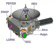 - «New Horizons Spacecraft and Instruments». NASA. 10 de noviembre de 2014. Archivado desde el original el 11 de julio de 2015. Consultado el 15 de abril de 2015.
