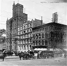 New York Life eligió el sitio en Place d'Armes porque estaba cerca del centro comercial de Montreal. Antes de que comenzara la construcción, los equipos demolieron el Hotel Compain y otro edificio de dos pisos que ocupaba los lotes. El edificio apareció por primera vez en el mapa de seguros de 1890.