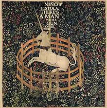 There's A Man With A Gun Over There es la segunda ópera rock de Niño y Pistola. En este trabajo la parte conceptual del disco toma una importancia mayor que en el anterior dando forma a una composición musical más compleja. En este caso, la secuencia de canciones forma un continuo sin cortes y con una curva dramática. En concreto el disco está dividido en dos bloques narrativos de 19 y 13 minutos y un epílogo de 6 minutos. Una vez más la evolución del sonido de la banda deriva hacia composiciones más densas y más complejas en instrumentación. La narración del disco se sitúa en los Estados Unidos de los años 50. La historia cuenta las aventuras y desventuras de Tom, un jornalero de ascendencia india que está cansado de su vida y decide reunir todo el dinero que tiene para comprar una pistola y matar a su jefe, Mr Doyle. Tras el asesinato, Tom ingresa en prisión. Diez años más tarde, el protagonista decide volver a la granja donde se crio con sus padres, pero al llegar allí no encuentra más que una ruina y una caja de recuerdos que él mismo había escondido cuando era niño. Esta historia es en realidad una parábola de la situación de crisis económica y social en la que se compuso el disco en el que se alienta a la revolución personal. La portada de este álbum es el tapiz El unicornio en cautividad, parte de la serie de tapices La caza del unicornio, datada entre los siglos XVI y XVII. Editado en vinilo de 12 pulgadas y en CD.