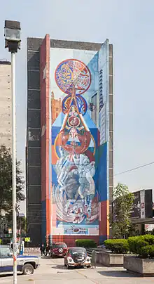 Nicandro Puente Eguía (Jaumave, Tamaulipas, México; 16 de marzo de 1953 - Ciudad de México, 14 de agosto del 2005) fue un pintor y muralista mexicano, virtuoso del dibujo y amante de los grandes formatos. Creador polifacético, trabajó de manera intermitente varias series: Zoomorfías, Anatomías equivocadas, Cuerpos fragmentados, Rostros de la angustia, Nocturnos, Luz y sombra, fundó el Patronato Metropolitano de Apoyo al Muralismo Comunitario y realizó en la Unidad Habitacional Nonoalco Tlatelolco los murales: Tlatelolco, raíz y expresión de México (1998), Homenaje a la mujer (1999) y 1985 Sismo y resurrección (2000), y otros dos que quedaron en proceso en los edificios Revolución y Molino del Rey.[cita requerida]