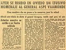 En 1934 formó parte de las fuerzas enviadas a Asturias para sofocar la rebelión, entrando en la capital astur junto con los generales Eduardo López Ochoa y Manuel Goded. En la guerra civil española actuó en Galicia y Asturias entre los años 1936 y 1939, dirigiendo, por ejemplo, una de las tres columnas gallegas formadas en Lugo a finales de julio -mandada posteriormente por el teniente coronel Jesús Teijeiro- que acudieron a liberar a la ciudad de Oviedo del sitio que sufría. Dicha unidad militar penetró por la costa occidental asturiana limítrofe con la provincia lucense, Castropol.