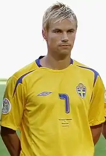 Con la selección sueca jugó 109 veces y anotó siete goles. Debutó en el año 1993. Ha participado en dos Copas del Mundo (Corea-Japón 2002 y Alemania 2006) y en tres Eurocopas (2000, 2004 y 2008).