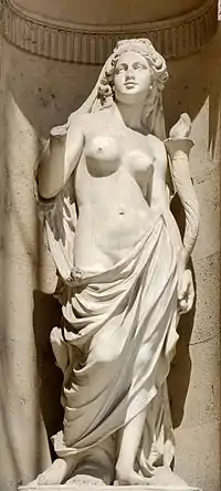 • Modestie - Modestia : para el recibidor de la Ópera Garnier, el modelo en yeso, fechado en 1872, se conserva en el Museo de Orsay desde 1983.[11]