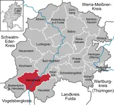 Se encuentra ubicado al este del estado, cerca de la orilla del río Fulda —un afluente del río Weser— y de la frontera con el estado de Turingia.