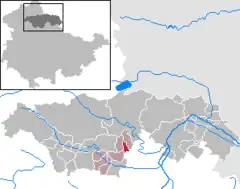 Se encuentra ubicado a poca distancia al sur de la frontera con el estado de Sajonia-Anhalt.