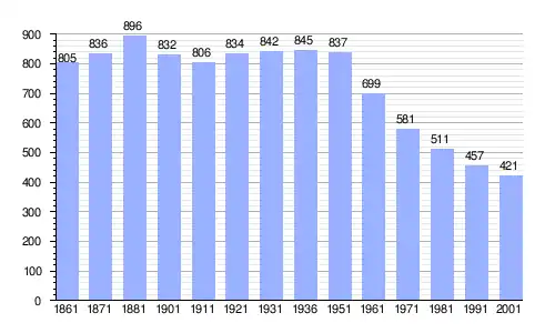 | Gráfica de evolución demográfica de Niella Belbo entre 1861 y 2001 |