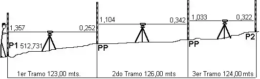Es la nivelación que se ejecuta partiendo de un PF, acotando varios puntos desde una misma estación.