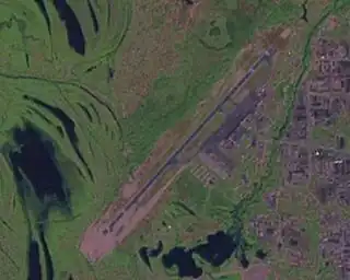 - Aeropuerto de Nizhnevártovsk (Rusia) Incluye foto satélite y ubicación del aeropuerto. Fecha acceso: 26 de septiembre de 2011 (en ruso).