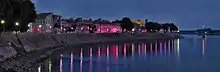 La vista es desde el muelle (una calle junto al agua) en el lado este del Ródano, hasta la orilla del río hacia la costa occidental: bajando desde el norte, el Ródano gira a la derecha al llegar a este punto para rodear las rocas sobre las que Arlés fue erigida. Desde las torres de Saint-Julien y Saint-Trophime a la izquierda, el espectador sigue la orilla este hasta el puente de hierro que conecta Arlés con el suburbio de Trinquetaille en la orilla derecha, la orilla occidental. Esto implica una vista de la plaza Lamartine hacia el suroeste. 43.682367, 4.630287 43.682367, 4.630287 / 43.682367°N 4.630287°E / 43.682367; 4.630287