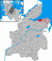 Se encuentra ubicado en el área centro-este del estado, cerca de las ciudades independientes de Schleswig y Kiel, de la costa del mar Báltico y del canal de Kiel.