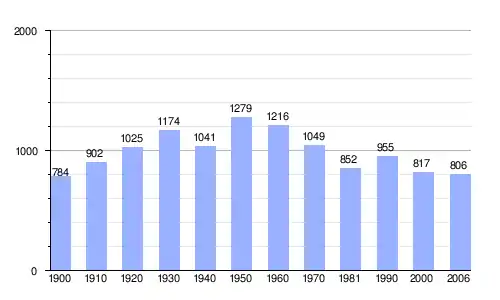 El constante aumento de la población desde principios de siglo se vio roto en la década de los 40 aunque volvió a recuperarse en la siguiente. A partir de entonces sufrió un rápido descenso hasta los 80, para incrementarse en los 90 y volver nuevamente a disminuir. En la siguiente tabla, donde se muestra la evolución entre 1996 y 2006 según datos del INE, se aprecia a partir de 1998 un mantenimiento de la población en torno a los 800 habitantes.