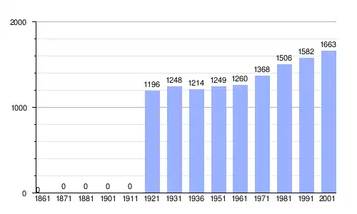 Gráfica de evolución demográfica de Nogaredo entre 1861 y 2001