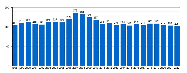 | Gráfica de evolución demográfica de Nogueruelas[5] entre 1998 y 2022 |
