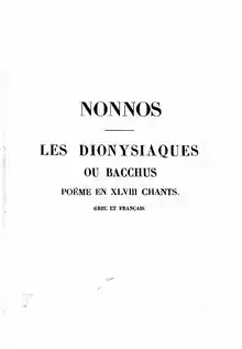 - Nono de Panópolis (1995). Las dionisíacas. Madrid: Editorial Gredos. ISBN 9788424916879.