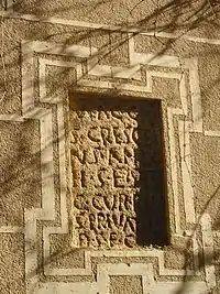 Traducción: Al emperador César Lucio Septimio Severo Pertinax Augusto, pontífice máximo, en su segunda potestad tribunicia, dos veces emperador, dos veces cónsul, procónsul, padre de la patria, príncipe óptimo, fortísimo y providentísimo. Por decreto de los decuriones, los duoviros Décimo Julio Celso y Lucio Petronio Negro se encargaron <de erigir la estatua> con un valor de 10 libras de plata - CIL II, 700: Q(uintus) Caeci/lius Sex(ti) / f(ilius) Avitus / an(norum) XXXV / h(ic) s(itus) e(st) s(it) t(ibi) t(erra) l(evis)
