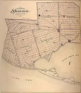 - Esta obra contiene una traducción derivada de «Norfolk County» de Wikipedia en inglés, publicada por sus editores bajo la Licencia de documentación libre de GNU y la Licencia Creative Commons Atribución-CompartirIgual 4.0 Internacional.