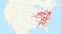 La red cubre una extensión de 21.500 millas (34.600 km) a lo largo de veintidós estados. También cubre el distrito de Columbia, y además cuenta con conexiones hacia Canadá, como a Toronto desde Buffalo y a Montreal desde Albany.[2][3] La compañía es responsable del mantenimiento de las vías así como del tendido.[4] La principal función de la red es el transporte de carbón desde los estados de Indiana, Kentucky, Pensilvania, Tennessee y Virginia Occidental, además de ofrecer la mayor red intermodal del este en el país.