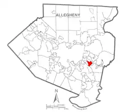 ![]() Ubicación en el condado de Allegheny ![]() Ubicación del condado en Pensilvania ![]() Ubicación de Pensilvania en EE. UU. | ||