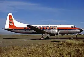 ![]() Convair CV-440 (CP-1040) de North East Bolivian Airways aparcado en el Aeropuerto Internacional El Alto de La Paz, Bolivia (1990) | |||||