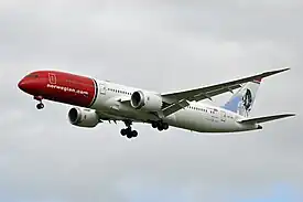 ![]() Un Boeing 787-9 de Norwegian Long Haul aproximándose al Aeropuerto de París-Charles de Gaulle | |||||