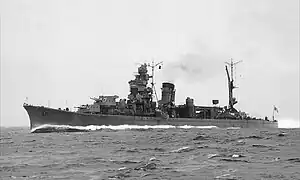 El 19 de junio de 1944 fue asignado como buque insignia del contralmirante Mikio Hayakawa y participa en la Batalla del Mar de Filipinas donde sobrevive indemne. En julio de 1944 fue enviado a Kure donde se le incrementó fuertemente su artillería antiaérea y se le dotó de dos sistema de radar, el Tipo 13 de detección aérea y el Tipo 22, radar de superficie.