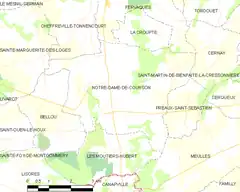 - Página donde se especifican, entre otras cosas, los datos demográficos de la comuna de Notre-Dame-de-Courson entre los años 1793 y 2006. Consultado el 19 de junio de 2016 (en francés)