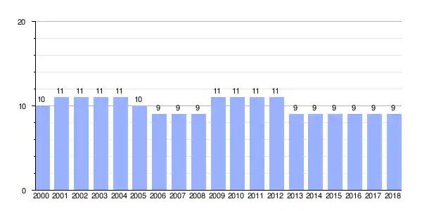 | Gráfica de evolución demográfica de Novais entre 2000 y 2018 |