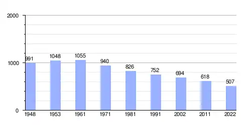 Hasta 2022 la población era de 507 habitantes,[3] con una densidad de población de 38,91 habitantes por kilómetro cuadrado.[3]