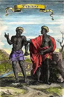 Los nubios (en árabe: نوبي, nūbī), son un grupo etnolingüístico de africanos indígenas de la actual Sudán y el sur de Egipto, que se originan a partir de los primeros habitantes de la zona central del Valle del Nilo. Se considera una de las primeras cunas de la civilización.[1] Hablan lenguas nubias, parte de las lenguas sudánicas orientales.