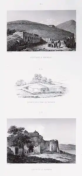 - «1. Οθωμανική κρήνη στην Πύλο. 2. Δεξαμενή νερού στην Πύλο. 3. Η είσοδος του Νιόκαστρου στην Πύλο. - BLOUET, Guillaume-Abel - ME TO BΛΕΜΜΑ ΤΩΝ ΠΕΡΙΗΓΗΤΩΝ - Τόποι - Μνημεία - Άνθρωποι - Νοτιοανατολική Ευρώπη - Ανατολική Μεσόγειος - Ελλάδα - Μικρά Ασία - Νότιος Ιταλία, 15ος - 20ός αιώνας». el.travelogues.gr. Consultado el 3 de julio de 2020.
