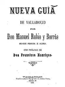 - Manrique, Francisco (1895). «Prólogo». En Rubio y Borrás, Manuel, ed. Nueva guía de Valladolid. Valladolid: Establecimiento Tipográfico de Julián Torés. Wikidata Q115707463.