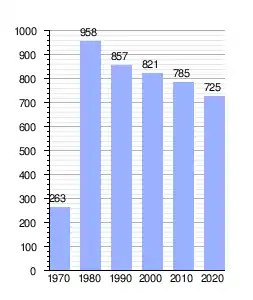 | Gráfica de evolución demográfica de Nuevo Capirio entre 1970 y 2020 |