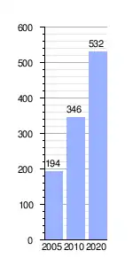 | Gráfica de evolución demográfica de Nuevo Orizatlán entre 2005 y 2020 |