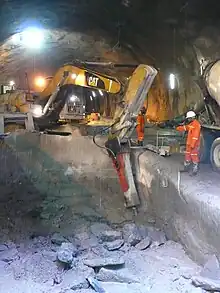 - Protección de hormigón proyectado: se debe minimizar el aflojamiento y la deformación excesiva de la roca. Esto se logra aplicando una fina capa de hormigón proyectado inmediatamente después del avance de la cara.