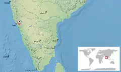 Esta especie es endémica del distrito de Dakshina Kannada en Karnataka, en el suroeste de la India.[5]