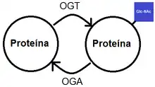 La O-GlucosilNAcetilación (O-GlcNAc) es tipo de glicosilación que se produce sobre una gran cantidad de proteínas citosólicas y nucleares. Consistente en la adición de un residuo de N-Acetilglucosamina (GlcNAc) sobre el grupo hidroxilo de los aminoácidos serina o treonina en algunas proteínas.