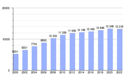 | Gráfica de evolución demográfica de O Milladoiro entre 2000 y 2022 |